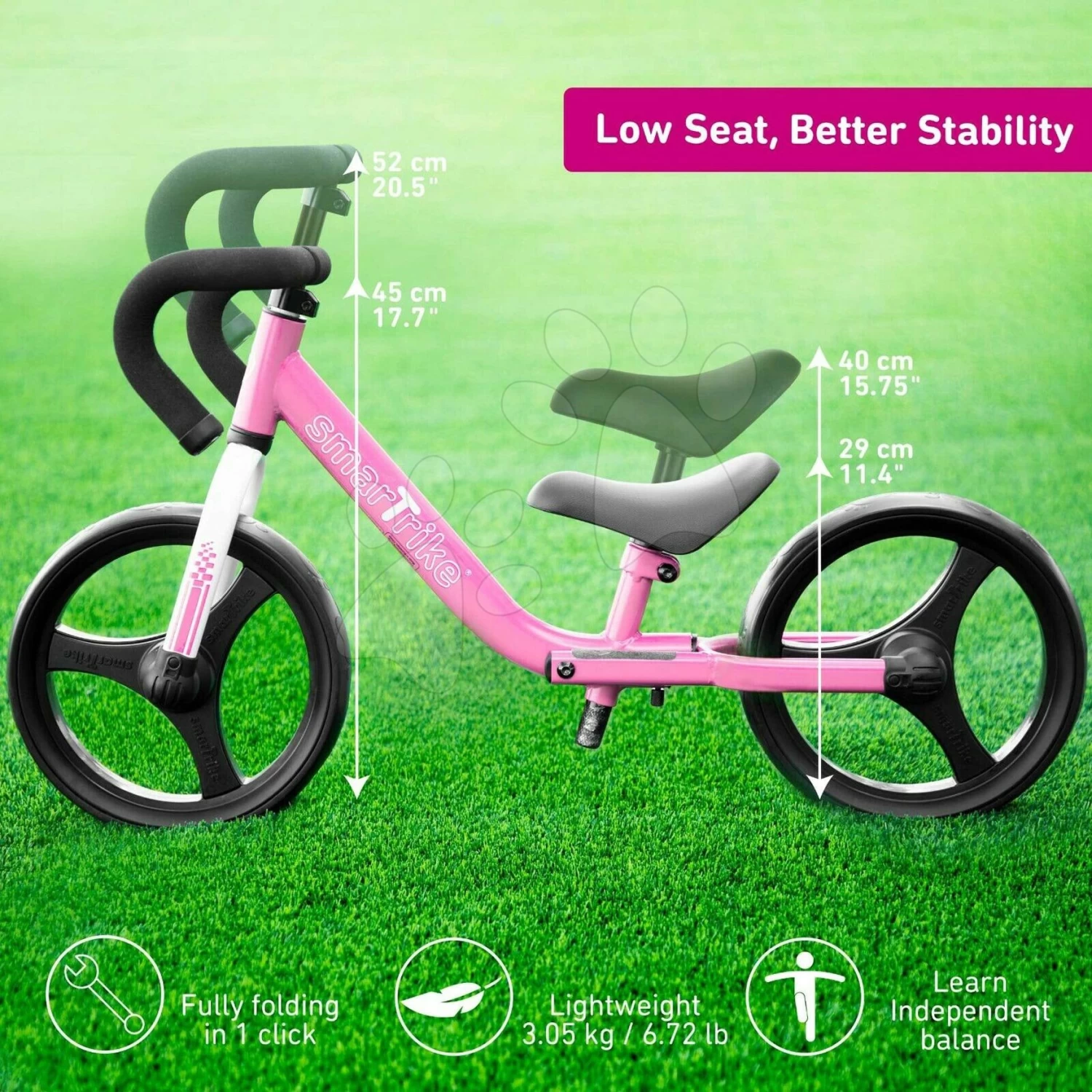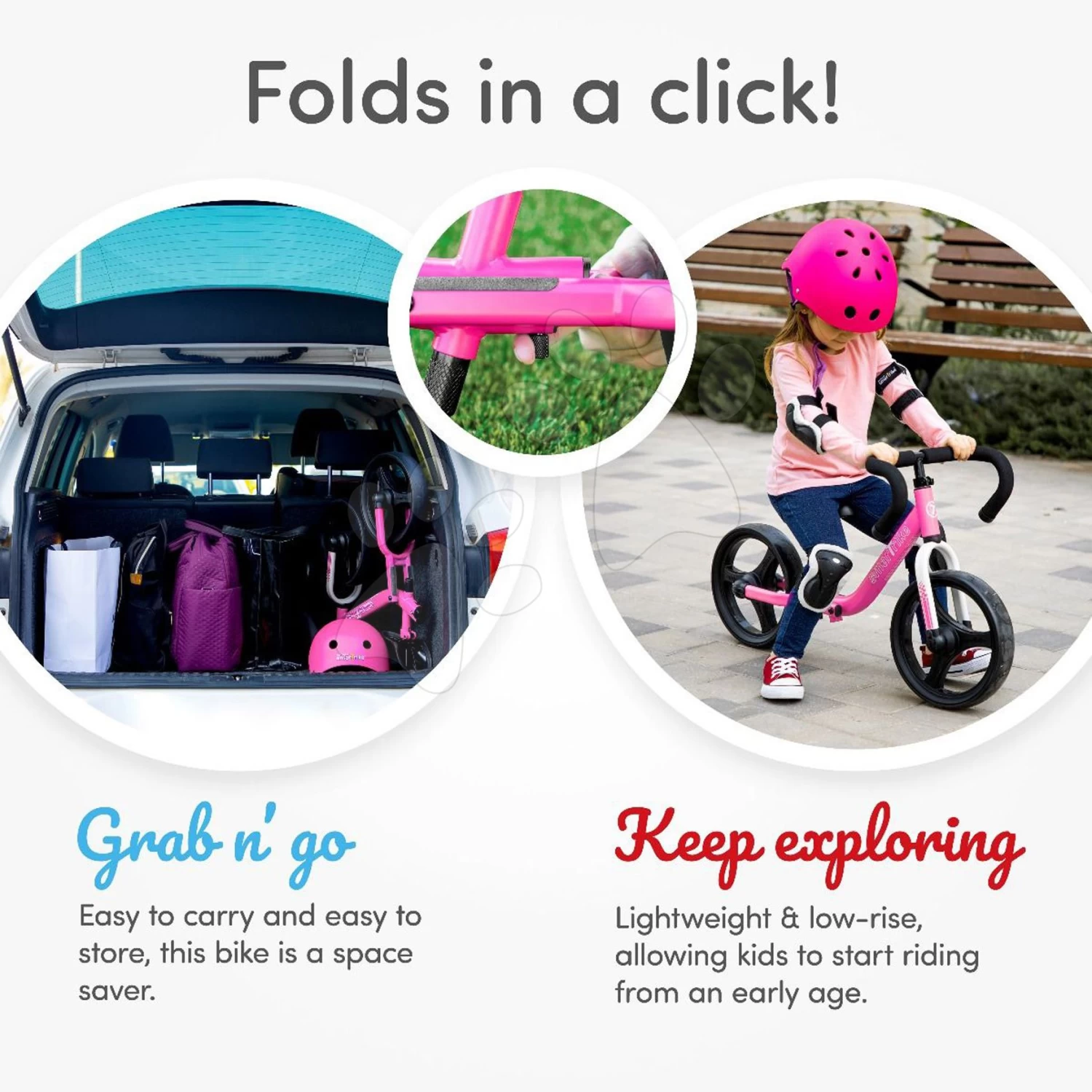 Balance Laufrad Zusammenfaltend Folding Balance Bike Pink SmarTrike Pink Aus Aluminium Mit Ergonomischen Griffen Ab 2-5 Jahren Und Protektoren Als Geschenk