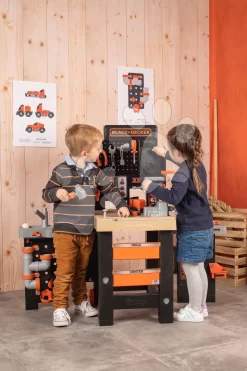 Werkstattset Black+Decker Smoby Mit 79 Zubehörteilen Und Maxi Power Bagger Mit Sitz