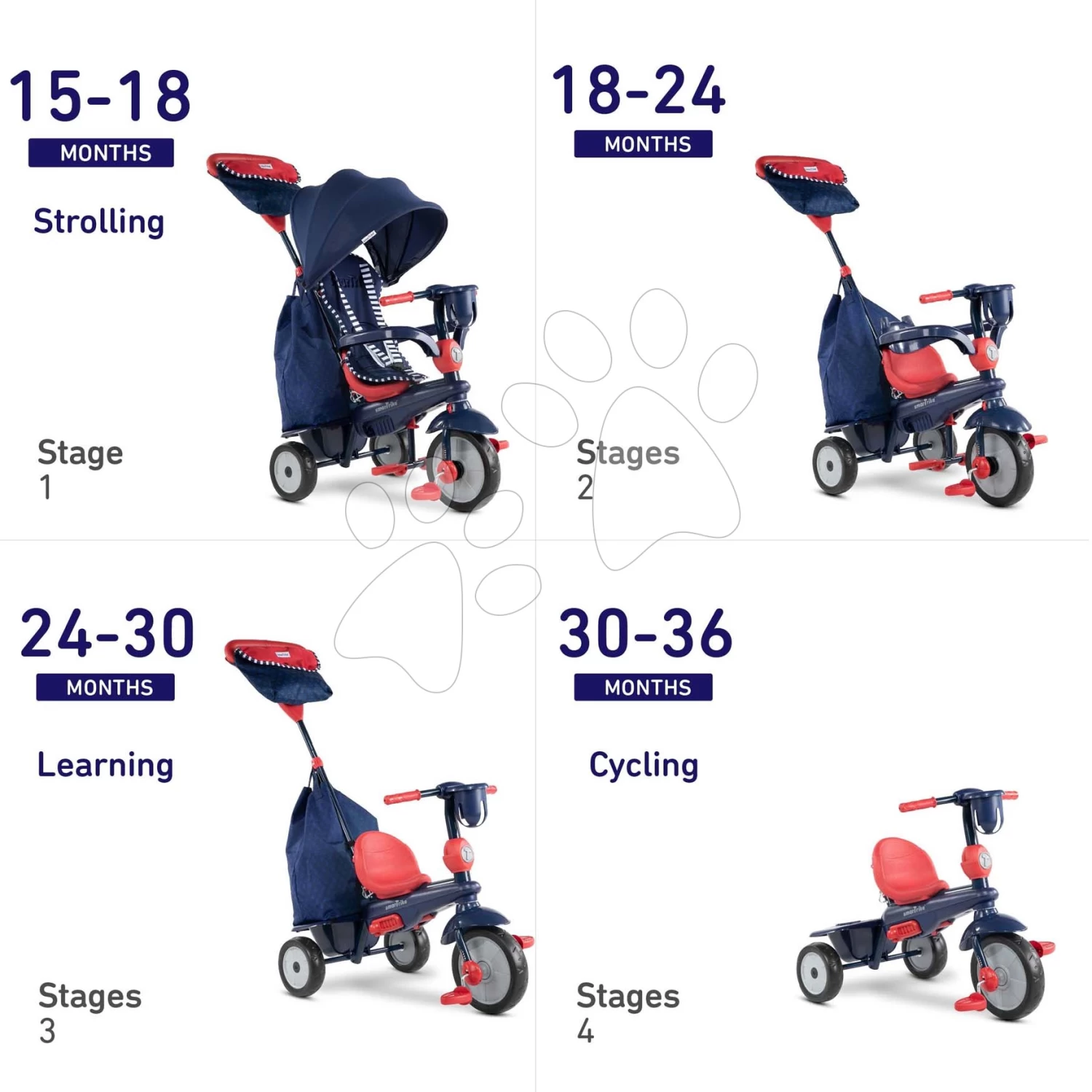 Dreirad Swirl DLX 4v1 Blue&Red SmarTrike TouchSteering Mit Schalldämpfer Und Freilauf + UV-Filter Blau-rot Ab 10-36 Monaten