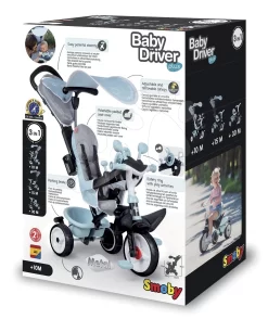 Dreirad Und Kinderwagen In Einem Mit Bremse Baby Driver Plus Blue Smoby Mit EVA-Rädern Und Intuitiver Steuerung Blau Ab 10 Monaten