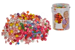 Holzperlen Zum Auffädeln Wooden Bead Set In Bucket Eichhorn Verschiedene Farben Und Formen, Mit Einer Schnur Und Einem Finish Von Ca. 360 Teilen Ab 4 Jahren