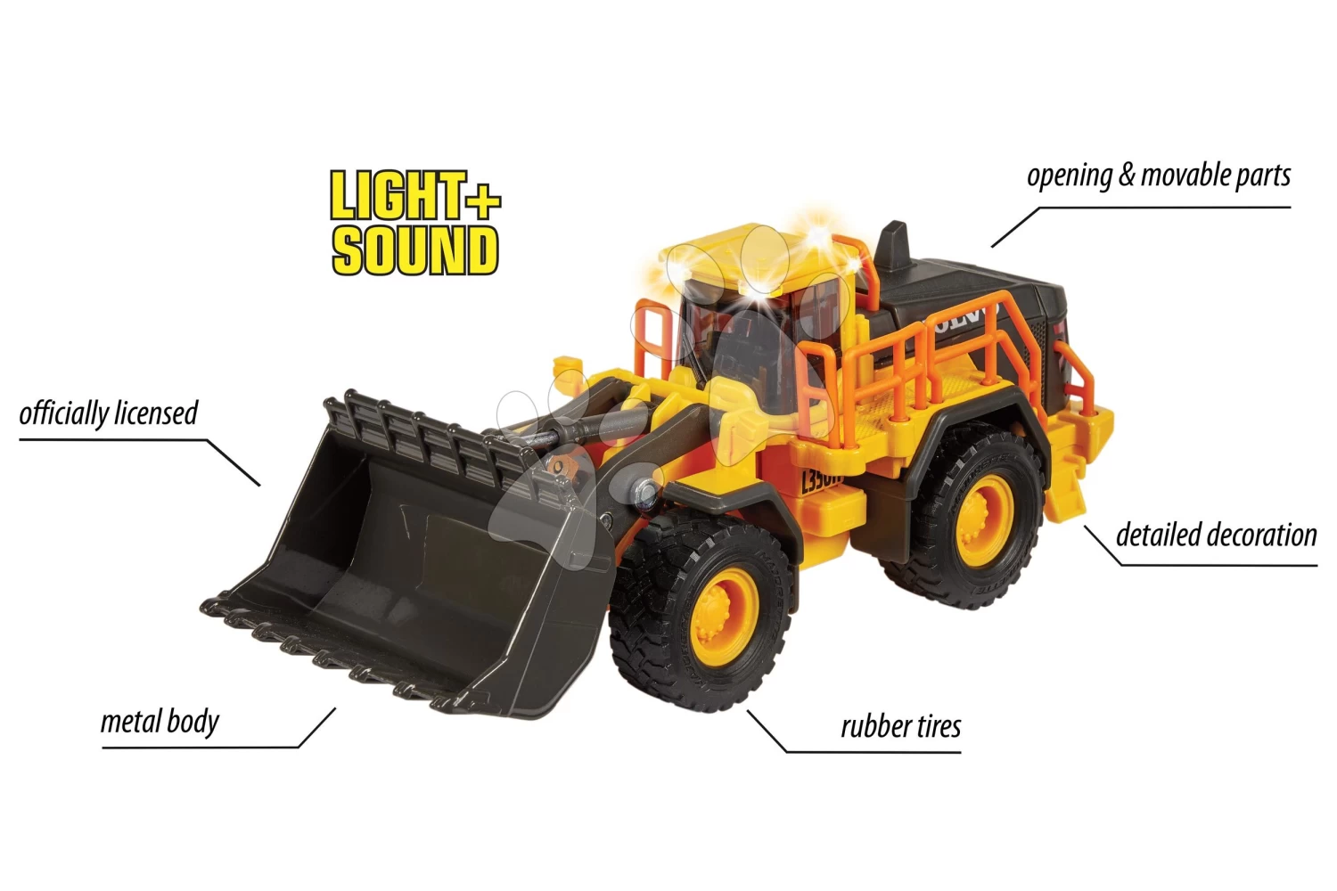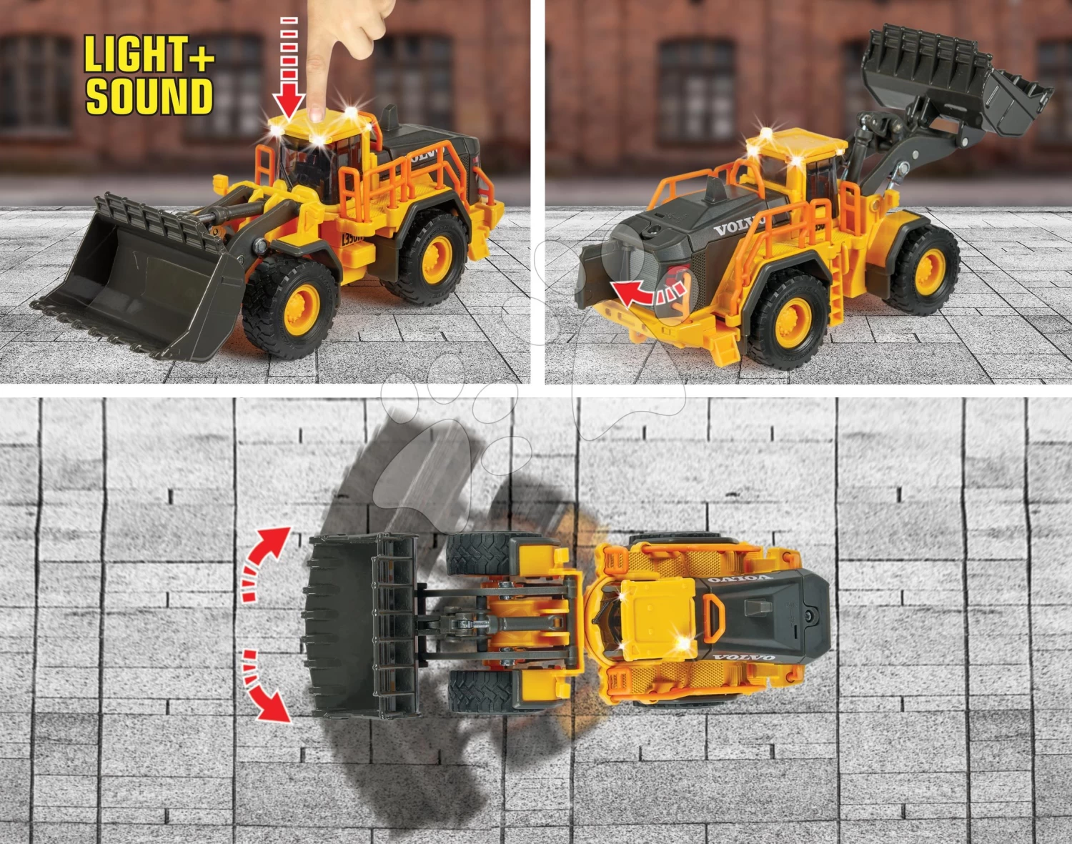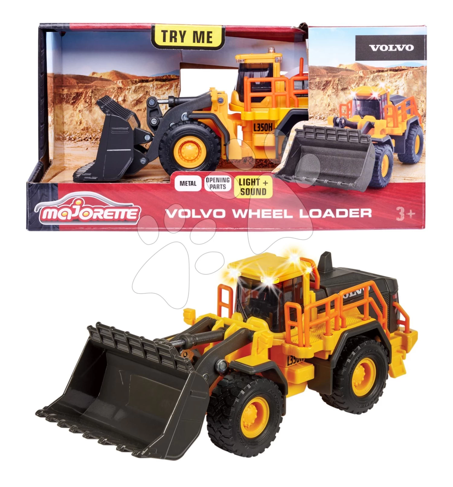 Lader Volvo Wheel Loader Majorette 21 Cm Lang Mit Sound Und Licht Und Beweglichen Teilen