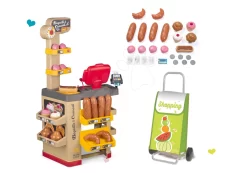 Set Bäckerei Mit Kuchen Baguette&Croissant Bakery Smoby Mit Elektronischer Registrierkasse Und Einkaufswagen Auf Rädern