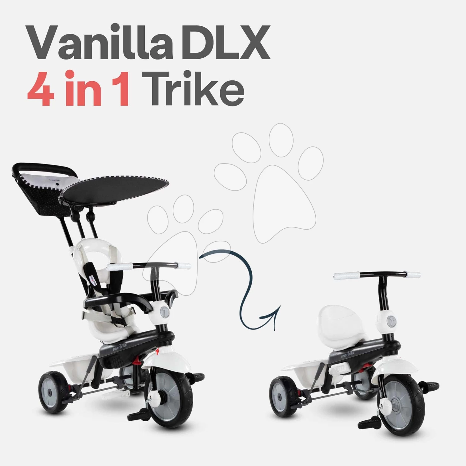 Smartrike Dreirad Vanilla DLX SmaTrike Touch Steering Steuerung Mit Sonnenschirm Und Tasche Schwarz Und Weiß Ab 10 Monaten
